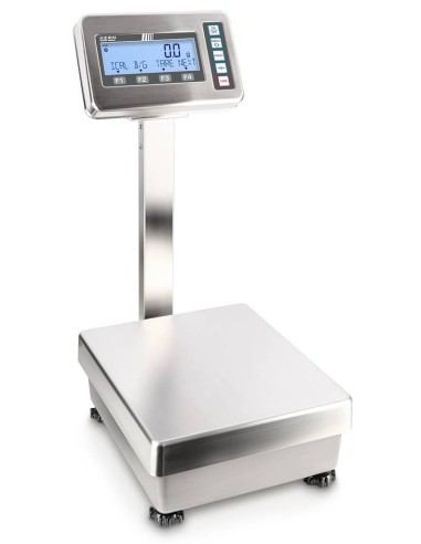Bilancia KERN FES / FEJ FEJ con terminale di pesatura in acciaio inox e classe di protezione IP65, igenica facile da pulire. Struttura in metallo, robusto e stabile. I tasti funzione configurabili a piacere consentono di personalizzare le impostazioni della bilancia. Funzionamento intuitivo grazie alla riga informativa sul display. Protezione antipolvere e antispruzzo IP65 (secondo EN 60529)