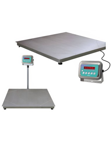 Bilancia da pavimento FSI in acciaio inox IP68 anche per esterno, utilizzabile all'aperto. Celle di carico stagne IP68 in acciaio inox 17-4 PH; piattaforma in acciaio inox AISI 304 con piano di carico ispezionabile lato celle e lato cassetta di giunzione; Piedini snodati in acciaio inox AISI 304 autocentranti su sfera. Indicatore di peso WLIGHT in dotazione.
