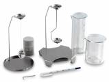 Tali kit solitamente comprendono picnometro, una piastra di supporto, staffe, termometro per verificare la temperatura dell’acqua, becher in vetro, sostegni per solidi galleggianti e uno o più flaconi di agente umidificante.