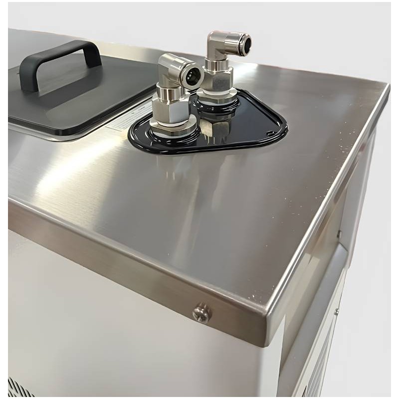 Il sistema di circolazione garantisce un flusso continuo del fluido refrigerante, favorendo la condensazione dei vapori di solvente e migliorando l’efficienza del recupero.