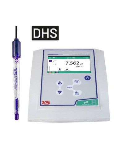 Phmetro da laboratorio XS PH 8 PRO DHS, configurato con elettrodo analogico o digitale e/o agitatore con tante funzionalità di supporto. Display grafico, password, 3 punti di calibrazione GLP, allarme in caso calibrazione scaduta, indicazione sullo stato dell'elettrodo. Datalogger + uscita PC/Stampante, menù multilingue, impostazione allarmi su misurazioni. Software di gestione gratuito, di serie.
